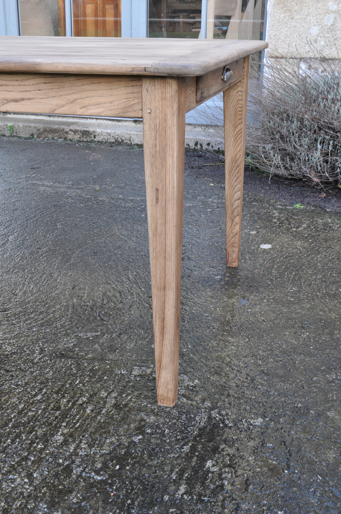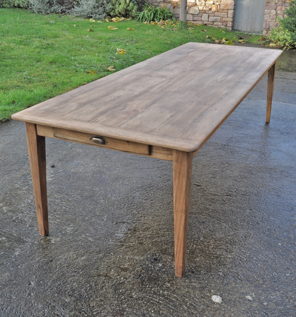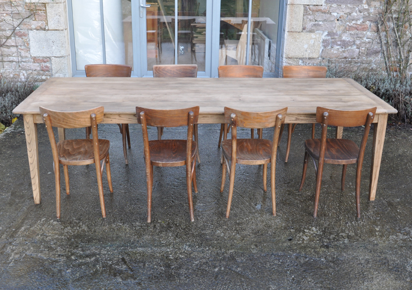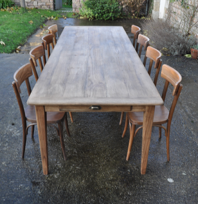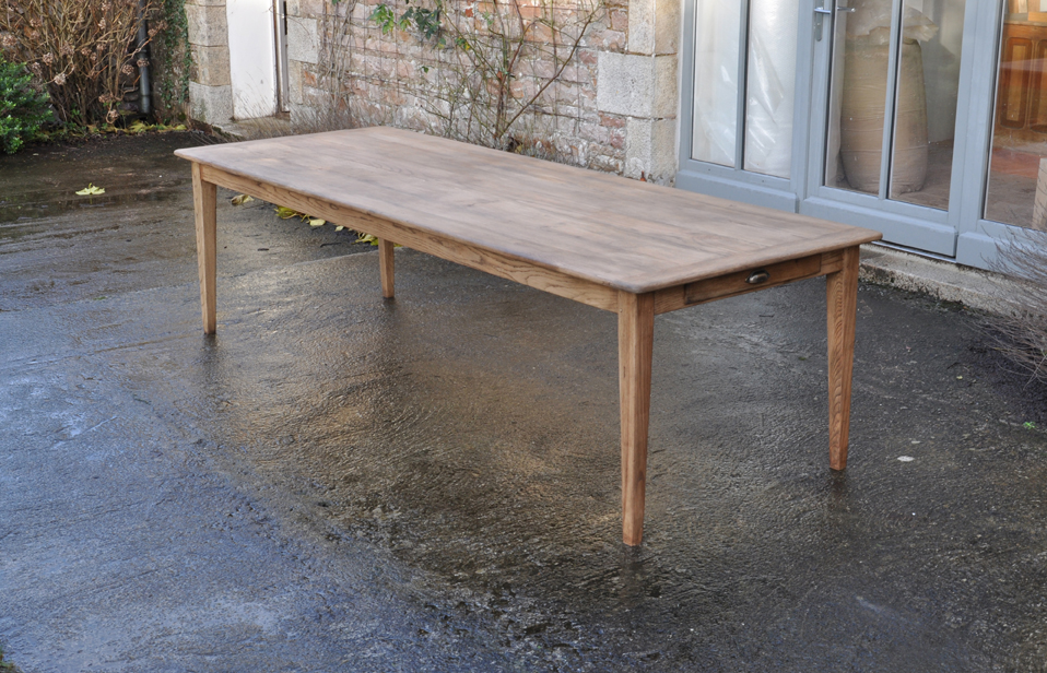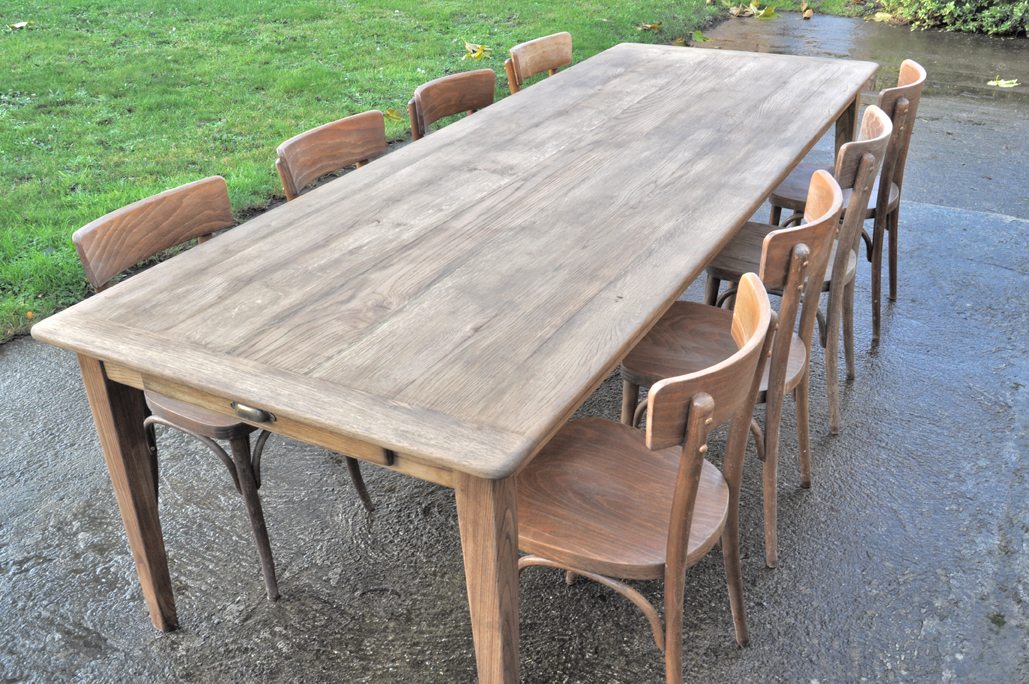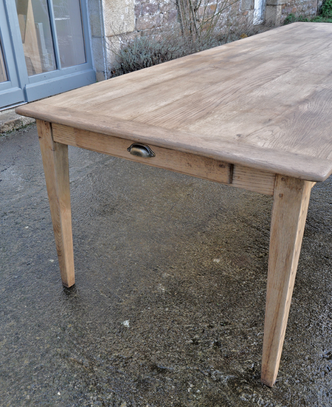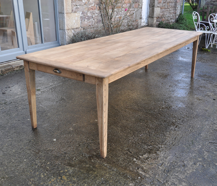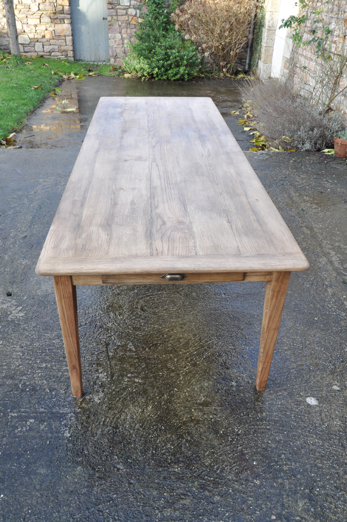 Grande table de ferme en chêne de 270x100cm avec deux tiroirs, elle peut accueillir jusqu’à 12 personnes ! Vous serez à l’aise, notamment grâce à une très belle largeur.
