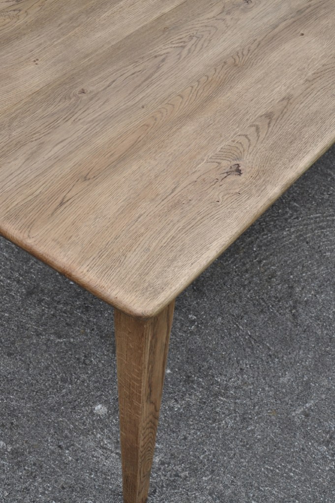 Table de ferme en chene pieds fuseau pour 6/8 personnes. Teinte noyer dans le pur style authentique.