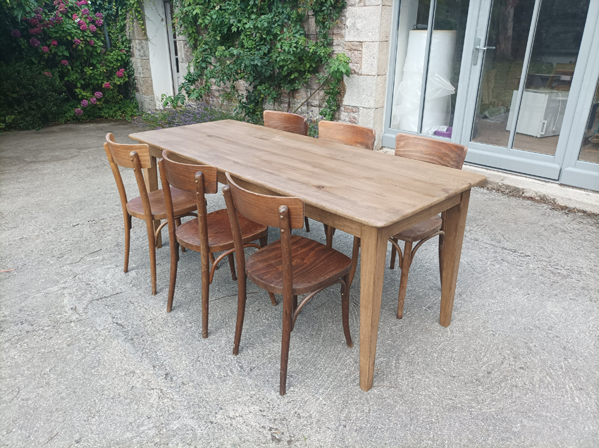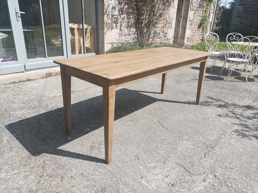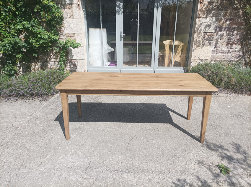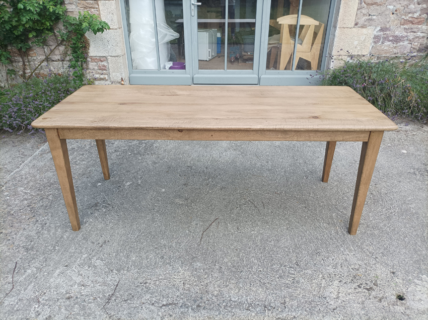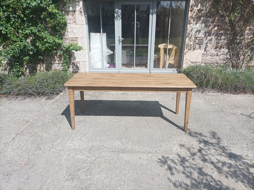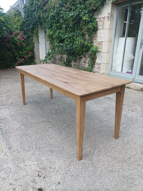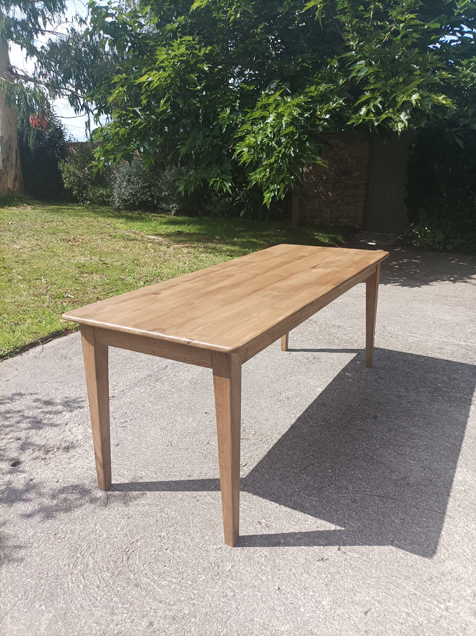 Table de ferme en chene de 190x75cm. Pieds fuseaux. Elle peut accueillir 6 à 8 convives.