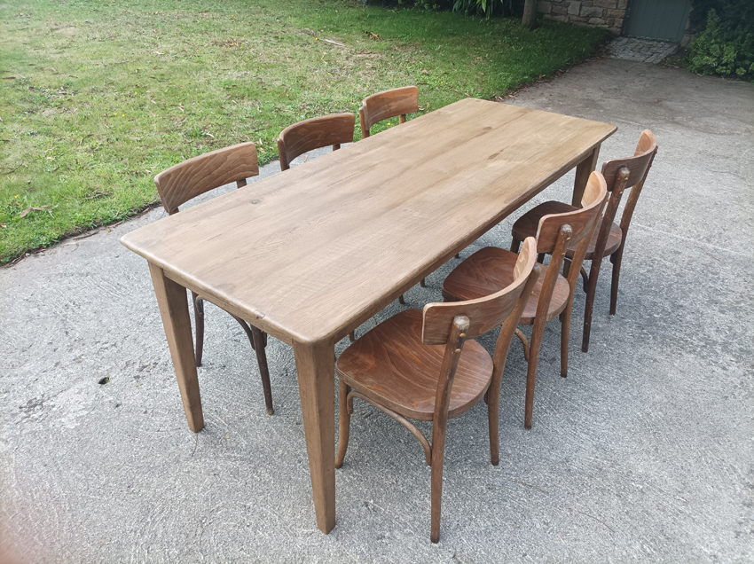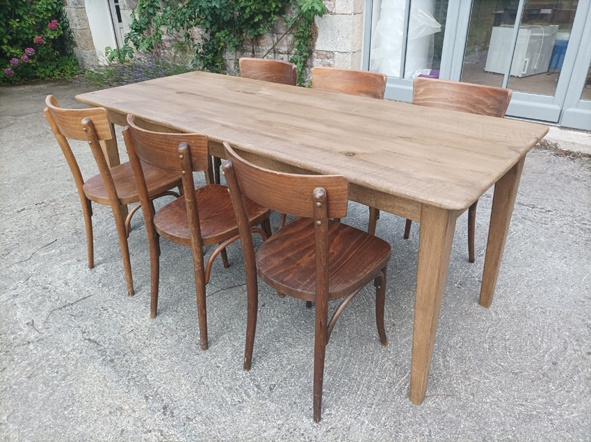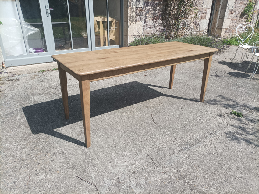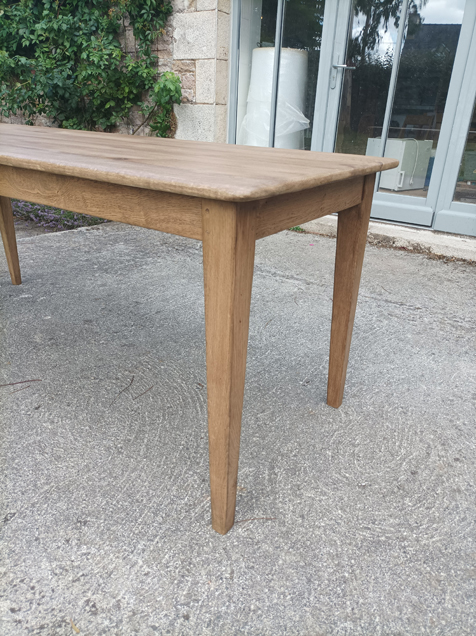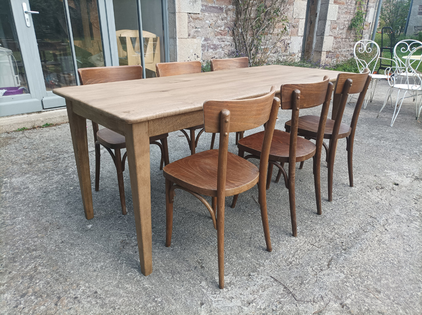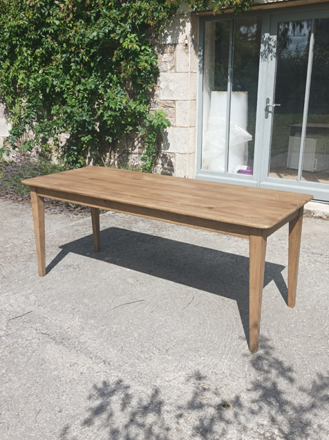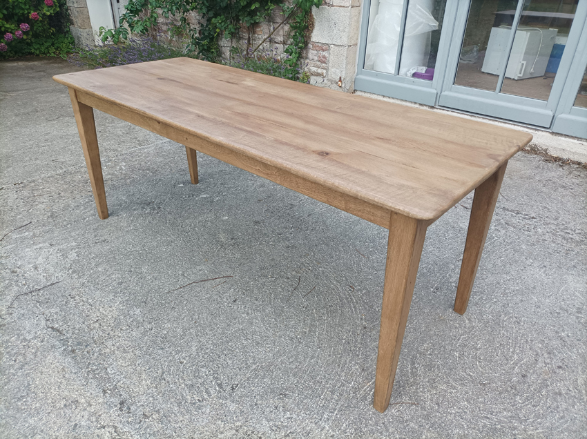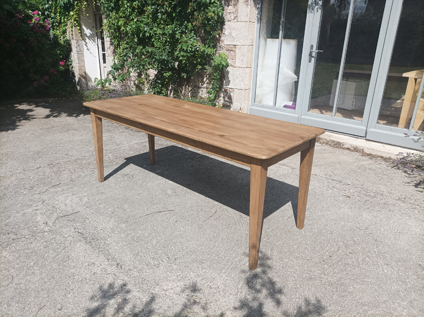 Table de ferme en chene de 190x75cm. Pieds fuseaux. Elle peut accueillir 6 à 8 convives.